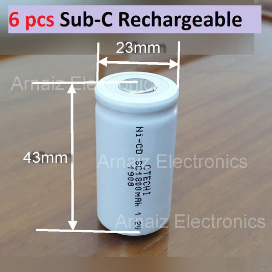 6 pcs Screw Driver Electric Drill SC Batteries 1.2V 1800mah Sub C Ni-Cd Rechargeable Battery SUBC