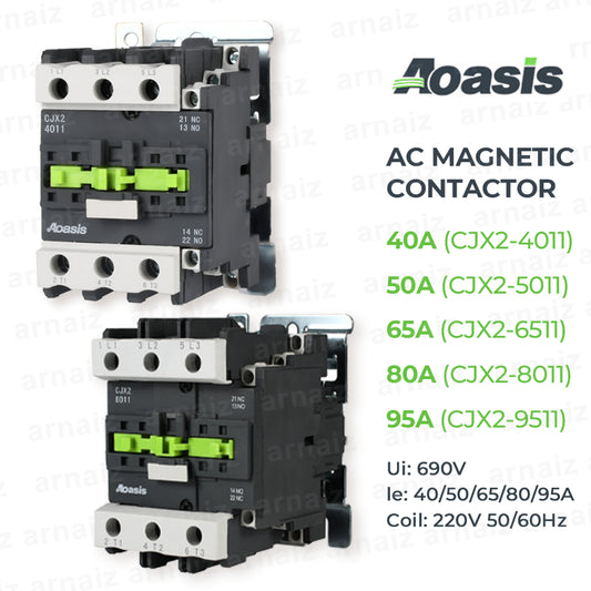 40A to 95A AC Magnetic Contactor CJX2 Contactors 4011 5011 6511 8011 9511 220V Aoasis Best Quality