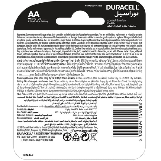 Duracell AA (2 pcs) Battery Everyday Alkaline Batteries Duracell AA Batteries LR6 Double A Battery