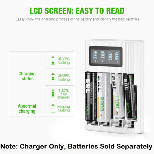 EBL TB-6409 Smart AA AAA Battery Charger 4 Slots LCD Rechargeable Battery Charger Micro USB Type C