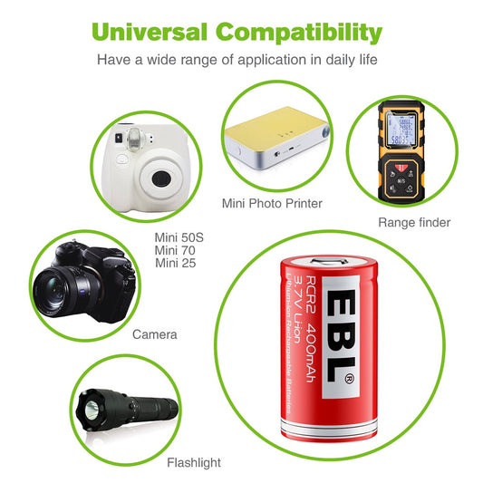 EBL TB-1527 (4 pcs) Rechargeable CR2 Lithium Batteries 3.7V 400mAh 15270 CR-2 CR 2 Lithium Battery