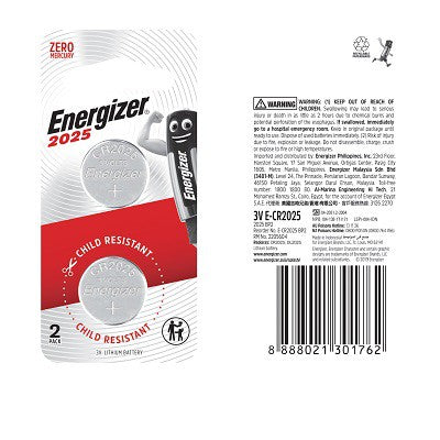 Energizer CR2025 (2 pcs) CR 2025 Battery CR-2025 Coin Cell Button 3V Lithium Batteries
