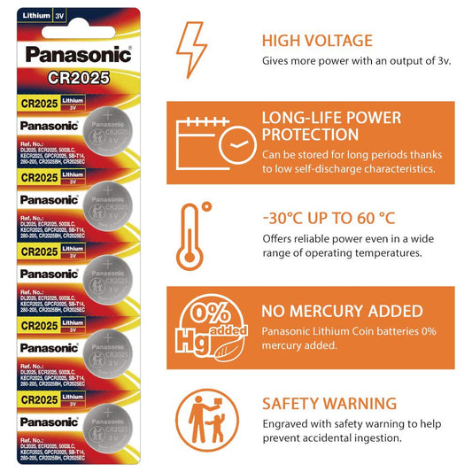 Panasonic CR2025 (5pc) ECR2025 2025 Lithium Coin Cell Button Battery 3V 3 volts