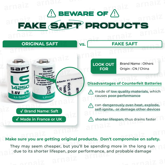 Saft LS14250 3.6v size 1/2AA Lithium Battery - non Rechargeable Batteries Saft 14250 1/2 AA Half AA