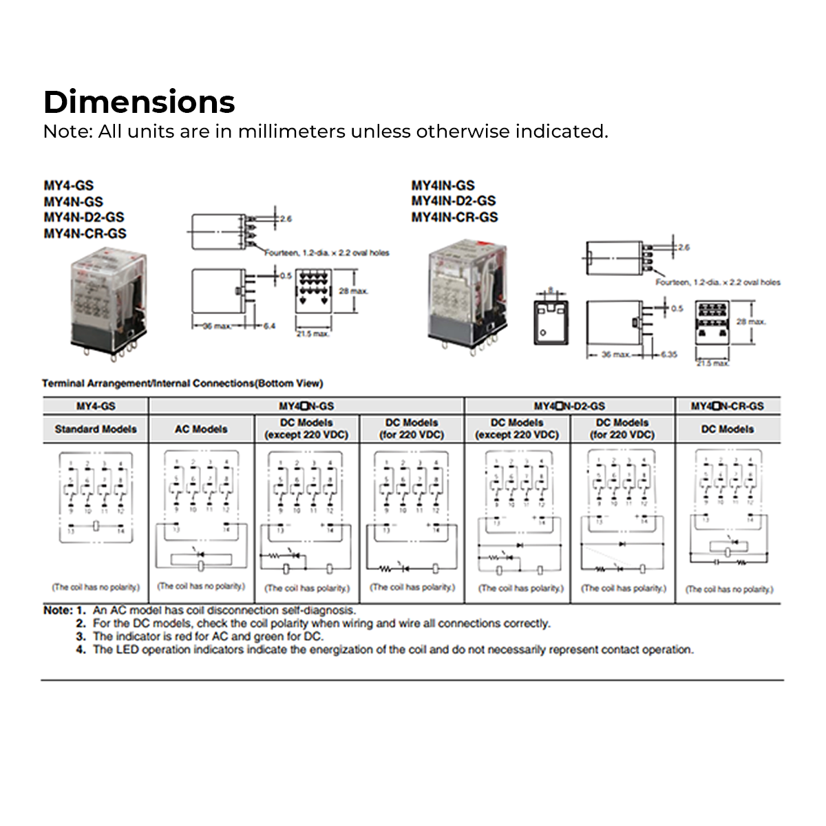 Omron MY4N-GS Miniature Plug in Power Relay 3A 220/240VAC 4 Pole with LED Indicator 4PDT