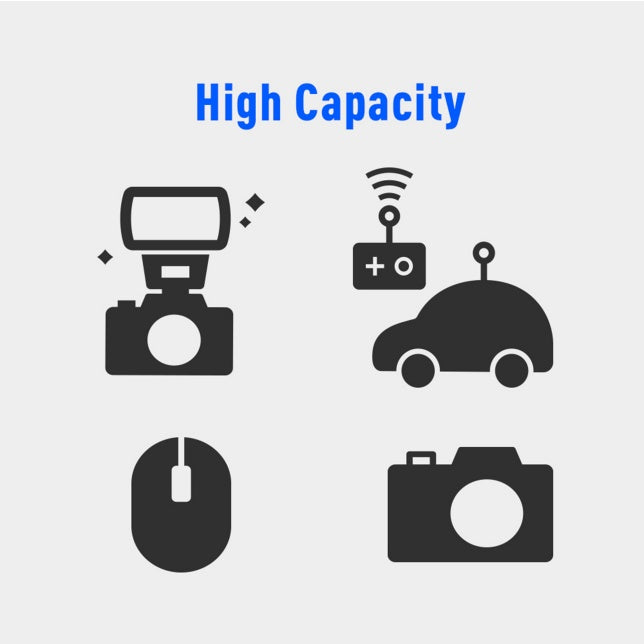 Approx. 28% higher capacity than eneloop. High capacity suitable for heavy use of high-drain devices such as photo flash, wireless keyboards & mouse, game controllers, radio, controlled toys and a range of household devices.