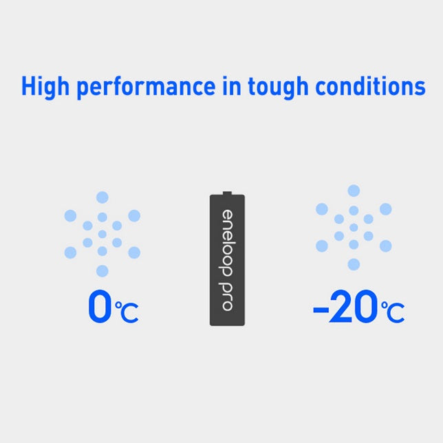 Keep A High Voltage Even After Low-Temperature Storage. Eneloop maintains high voltage in very low temperatures compared to alkaline batteries. Superior performance at 0 ℃ and works in temperatures as low as -20 ℃