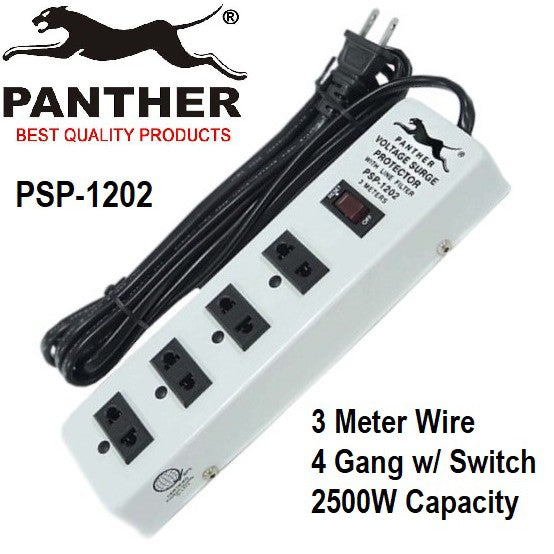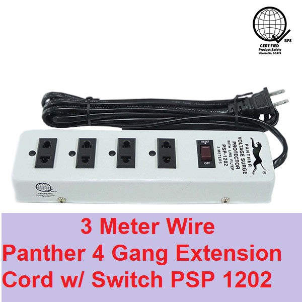 Panther 4 Gang Voltage Surge Protector 4 Outlets Extension Cord 3 meters PSP-1202 PSP1202 PSP 1202