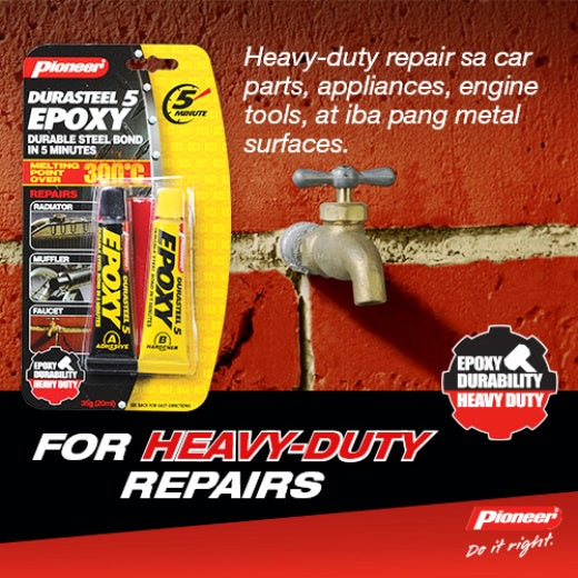 Pioneer Durasteel 5 Epoxy is a high-performance, fast-setting steel-filled, two-component adhesive that cures to a steel-hard metallic gray mass. It is ideal for quick-cure repairs that require high strength and durable bonds