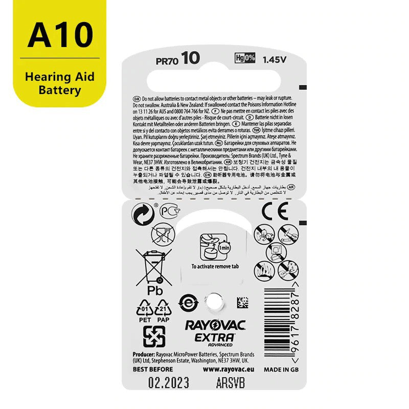 Rayovac Extra Advanced Size 10 PR70 (6 pcs) Hearing Aid Battery Hearing Aid Batteries 1.45V A10