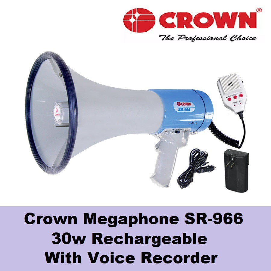 Rechargeable Portable Megaphone 30W Crown SR-966 SR966 SR 966 Talk, Siren, Whistle, Voice Recording