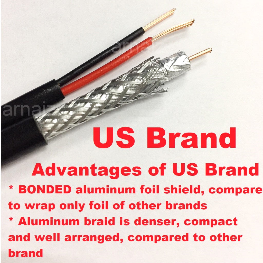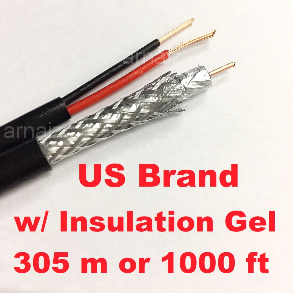 RG6 Siamese Cable CCTV Coaxial with Power DC US Brand 305 meters 1000 feet 305m 1000ft